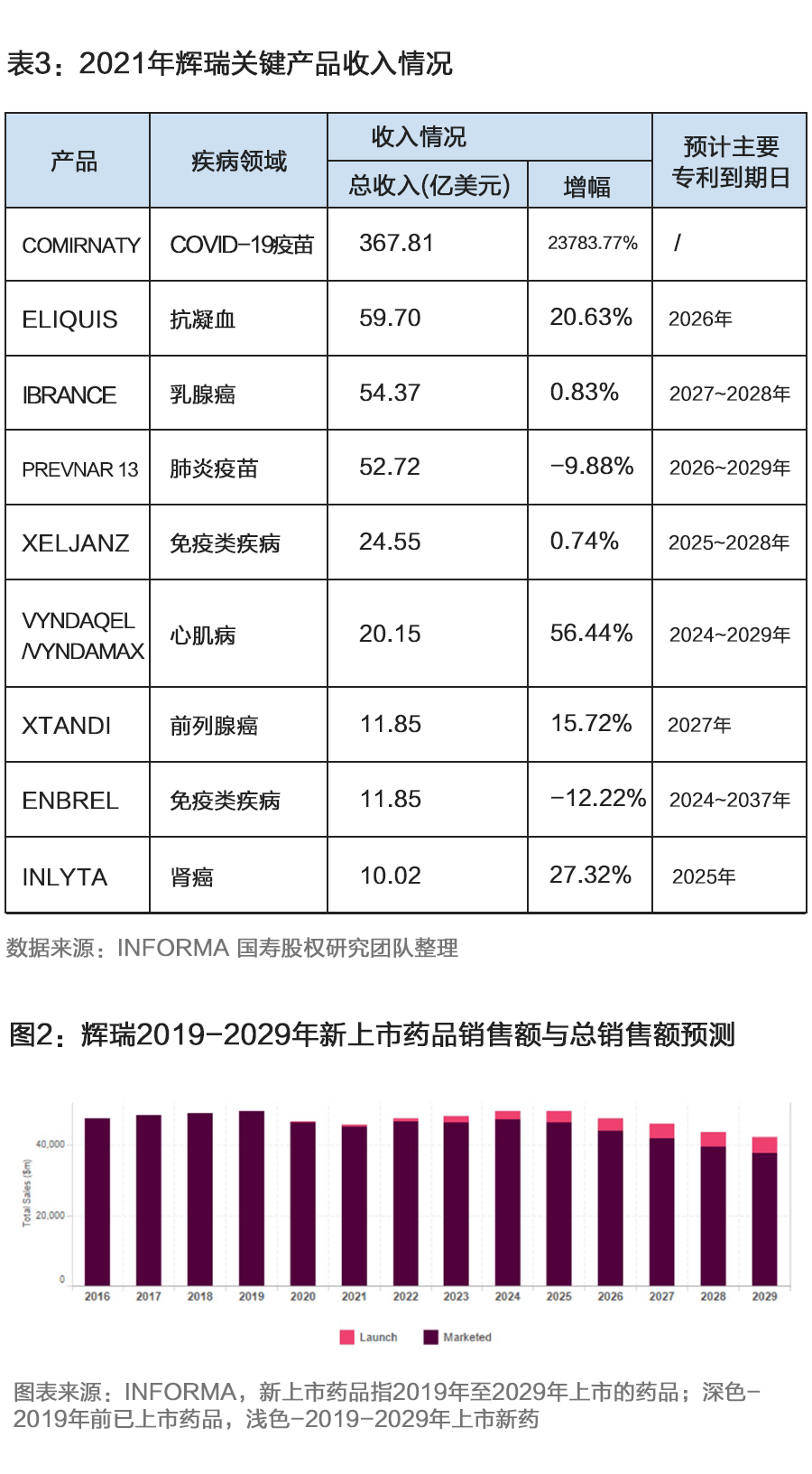 但值得一提的是,辉瑞从新冠产品上获得了巨额收入,复必泰疫苗2021年销售额高达367亿美元、特效药Paxlovid预计2022年也将带来235亿美元收入 ,加上其与葛兰素史克整合成立消费者健康合资企业,两家公司共计约可节省6.5亿美元,可以给予公司更大并购支持,有望帮助公司度过“专利悬崖”。目前,辉瑞已在并购方面有所安排,2021年以约22.6亿美元收购Trillium公司,获得两款CD47靶点的处于早期临床阶段的肿瘤药物;2022年以67亿美元收购Arena制药,瞄准用于多种炎症疾病的S1P调节剂etrasimod 。