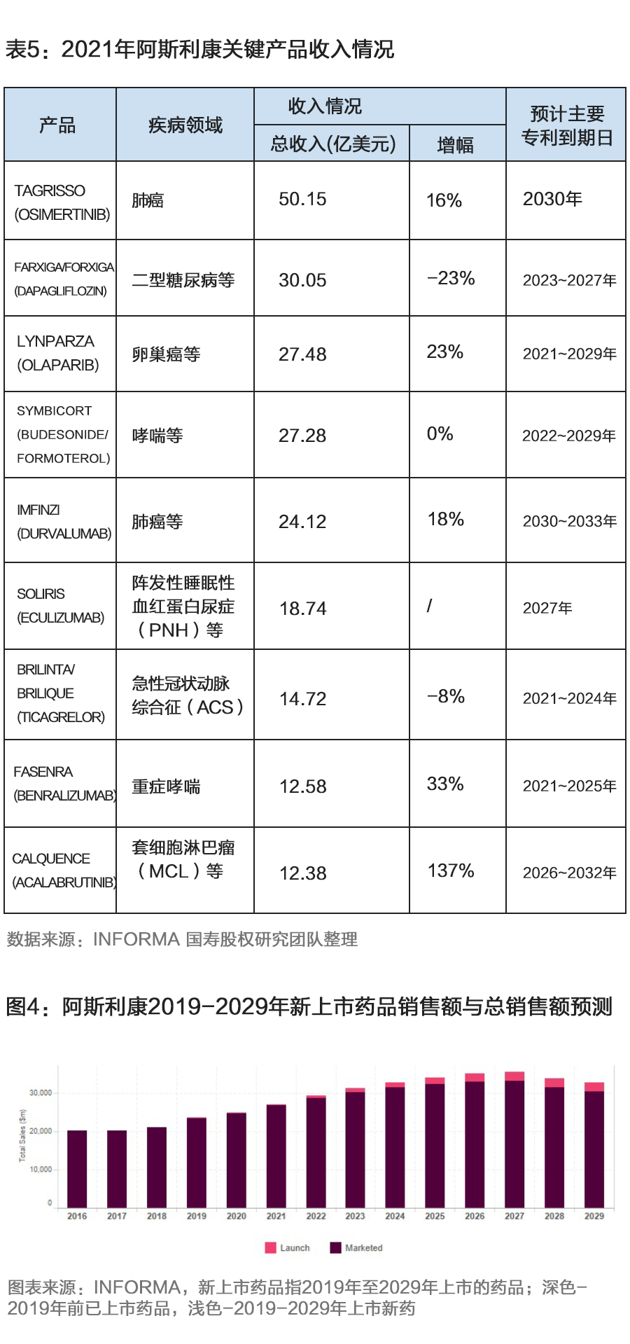 数据显示,2024-2027年前后,阿斯利康卵巢癌药物Lynparza等药品专利保护期将陆续结束,公司预计又将迎来一轮“专利悬崖”。近年来,阿斯利康陆续推出Enhertu(抗体偶联药)、Tagrisso(肺癌药物)等重磅新药,并积极开发药物不同适应症。同时,加速剥离传统药业务,将精力集中到肿瘤创新药研发上。2021年,肿瘤学药物的销售额已占到阿斯利康总销售额的36%。2021年7月,阿斯利康完成对罕见病药物公司Alexion收购,扩大罕见病业务领域。