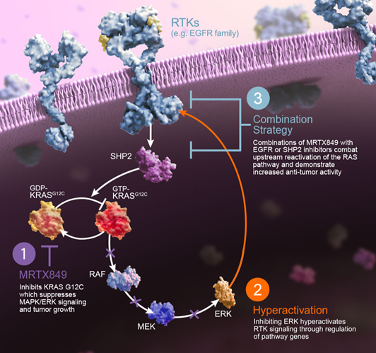 由Mirati公司开发,是一款高选择性的KRAS G12C抑制剂,可与KRAS G12C蛋白的半胱氨酸残基共价结合,保持KRAS蛋白与GDP结合的失活构象,阻断致癌信号传导,抑制肿瘤细胞的增殖,用于携带KRAS G12C突变的NSCLC治疗。