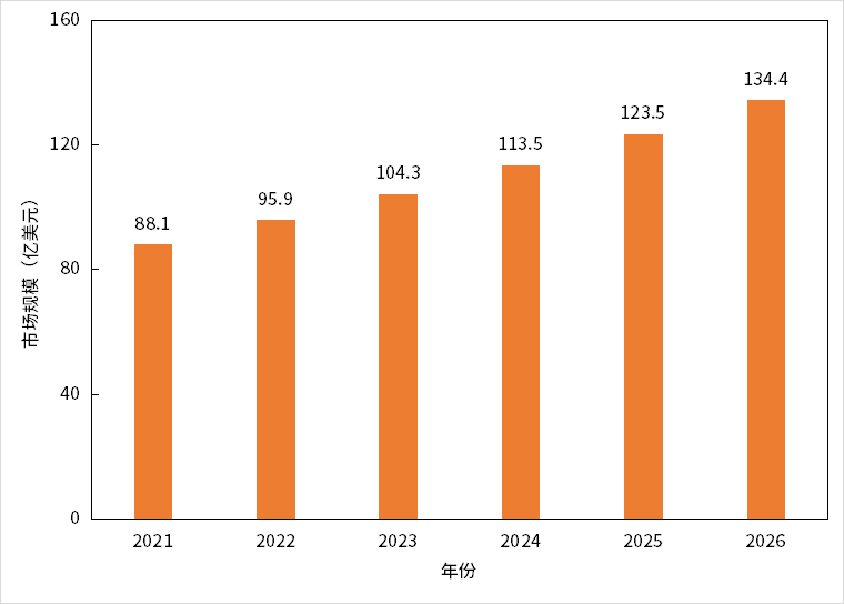 根据权威数据分析机构Market Date Forecast保守估计,全球脱发市场规模2021年至少达88.1亿美元,预计2026年将增长至134.4亿美元(约合896亿人民币),年均复合增长率达到8.8%。