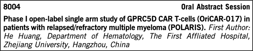 在治疗复发/难治性多发性骨髓瘤赛道上,原启生物的OriCAR-017产品采用了靶向GPRC5D的二代CAR分子设计,在此基础上添加了其独有的Ori元件,以此来增强细胞的扩增性和持久性。GPRC5D是一种C型7次跨膜受体蛋白,主要在MM患者的恶性浆细胞上表达。在这项I期研究中,OriCAR-017在RRMM患者中显示了良好的安全性和显著的疗效,大部分的AEs是暂时的和可控制的,100% ORR和100% MRD阴性率以及良好的安全性支持OriCAR-017成为一种具有竞争力的RRMM治疗方法。值得注意的是,之前BCMA CAR-T治疗复发的患者仍可受益于OriCAR-017。