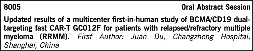 与GPRC5D新靶点相比,老牌靶点BCMA/CD19联用的CAR-T在治疗RRMM方面也宝刀不老,基于亘喜FasT平台快速制备的BCMA/CD19双靶点CAR-T展现出了深度且持久的响应率以及高MRD阴性率,安全性良好。截至2022年1月26日,共评估了28例患者(中位随访时间6.3个月,1.8-29.9)的疗效,DL1剂量ORR为100% (2/2),DL2剂量ORR为80% (8/10),DL3剂量ORR为93.8%(15/16),100%的MRD可评估患者(27/27)达到MRD阴性水平,28名患者中有1名未能得到评估。目前GC012F正在被研究用于早期治疗路线以及另外的适应症。