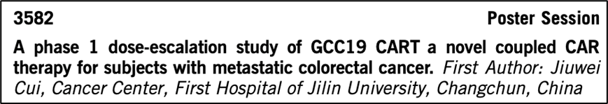 CAR-T细胞治疗在恶性血液病中显示了显著的临床疗效,但在实体肿瘤中疗效受限。斯丹赛生物的GCC19 CAR-T产品是基于其CoupledCAR实体肿瘤平台的首个临床候选药物,通过将靶向实体肿瘤CAR-T细胞与靶向CD19的CAR-T细胞配对来放大前者CAR-T细胞的增殖和活化,旨在克服传统CAR-T细胞在实体肿瘤中的局限性。GCC19 CART针对的靶点是在70%-80%的结直肠癌转移病灶中表达的鸟苷酸环化酶-C (GCC)。在两个剂量组中总有效率(ORR)为28.6%(6/21),其中剂量1的ORR为15.4%(2/13),两名受试者表现出部分响应(PR),另外3名疾病稳定(SD)或进展(PD)的受试者在PET/CT上有部分代谢反应(PMR),剂量2的ORR为50% (4/8),4名受试者出现PR(3例在第1个月出现,1例在第1个月出现SD后第3个月出现),另外2名SD受试者在PET/CT上有PMR。GCC19 CART在复发或难治性转移性结直肠癌中显示了有意义的剂量依赖的临床活性和可接受的安全性。