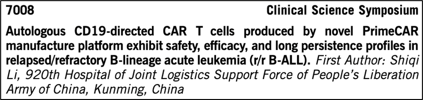 结果显示PrimeCAR平台可以在很短的时间内制备CAR-T细胞,并且具有很高的Tscm比例,在极低剂量治疗r/r B-ALL时具有良好的安全性同时显示出良好的疗效。