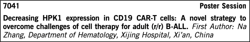 自从FDA批准首个CD19 CAR-T细胞治疗产品(Kymriah)用于治疗r/r B-ALL患者以来,细胞因子释放综合征(CRS)一直是危及生命的毒性副作用,严重限制了其治疗潜力。西京医院张娜团队开发了一种降低HPK1表达的CD19 CAR-T细胞产品XYF19,临床前试验显示其具有增强的抗肿瘤活性并且不会诱导高级别的CRS反应。在临床试验(NCT04037566)中入组的11名r/rB-ALL成人患者中,没有病人经历过剂量限制毒性DLT。在XYF19治疗的患者中没有发生3级或更高级别的CRS,而26%Tecartus治疗的患者和72% Kymriah治疗的患者中观察到3级或更高级别的CRS。本研究中未发生神经毒性事件,而Tecartus和Kymriah的神经毒性事件发生率分别为51%和43%。因此XYF19是一种很有潜力治疗成人B-ALL的新疗法。