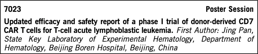供体来源的CD7 CAR-T对复发/难治性T细胞急性白血病的治疗效果非常显著,但是部分患者会发生移植物抗宿主疾病(GVHD),为了解决这一问题,北京协和医学院赵丽萍团队开发了一种自体CD7靶向的CAR-T细胞疗法。同时为了避免CD7 CAR-T细胞培养过程中的“自相残杀”现象,该团队在CAR-T细胞中引入了CD7 内质网锚定元件,这一设计可以通过降低CD7的细胞膜呈现从而最大限度的降低扩增过程的互杀问题。在入组的5例患者中,细胞因子释放综合征(CRS) 3例,其中1例为3级,中位发生时间为第5天(范围1-9),中位持续时间为4天(范围3-14)。无神经毒性、移植物抗宿主病或感染,5例患者均发生3-4级血液学毒性,30天内恢复至2级。输注1个月后,4例患者获得完全缓解,1例患者脑脊液中仍有白血病细胞。综合来看,自体CD7 CAR-T细胞在治疗r/r T-ALL /LBL患者过程中是安全有效的,没有GVHD发生迹象,但需要更多的病例和更长的随访时间来进一步评价该疗法。