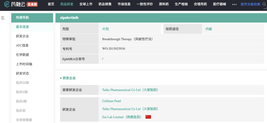 1.2022年5月12日,Cullinan Oncology与日本大鹏(Taiho Pharmaceutical,日本大冢子公司)宣布,双方就治疗EGFR 外显子20插入突变新药Zipalertinib(CLN-081/TAS-6417)达成战略合作,大鹏将收购Cullinan Oncology的子公司Cullinan Pearl。根据协议,大鹏将向Cullinan Oncology支付2.75亿美元的首付款以及1.3亿美元的开发、监管注册里程碑付款。