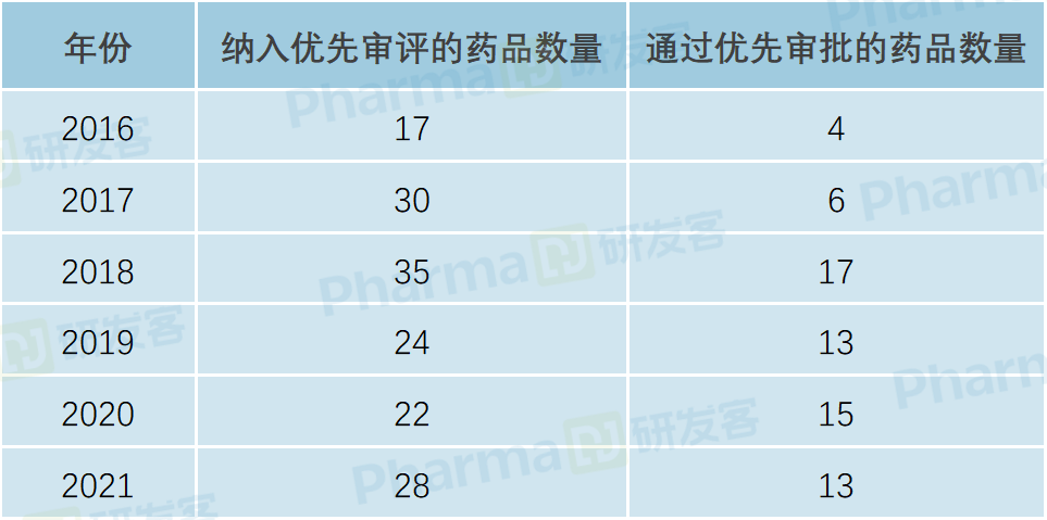 根据研发客的统计,从2016年至2021年底,已有150多个儿童用药被纳入优先审评,近70款成功通过优先审批上市(见下表)。