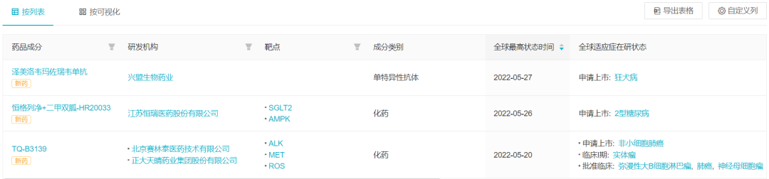 来自:Insight 数据库 全球新药可视化(http://db.dxy.cn/v5/home/)