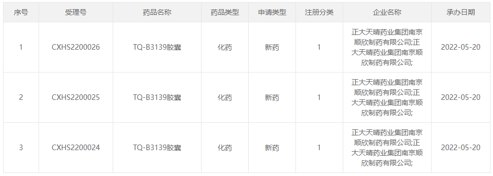5 月 20 日,正大天晴 1 类新药 TQ-B3139 上市申请获 CDE 受理,用于 ALK 阳性晚期 NSCLC。这是正大天晴在安罗替尼之后申报上市的第 2 款 1 类新药。点此查看受理号