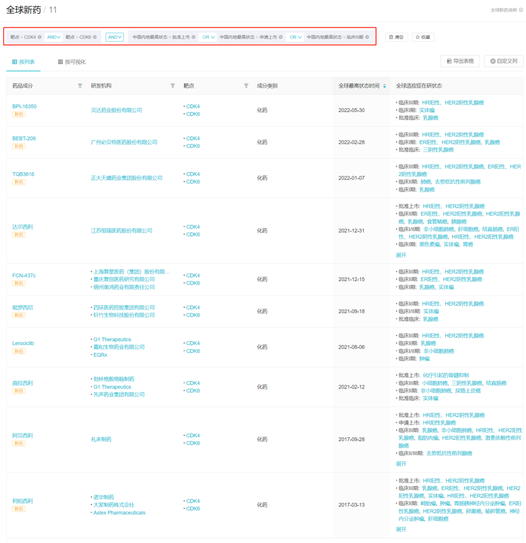 国内临床 III 期+申报上市+获批上市 CDK4/6 抑制剂项目