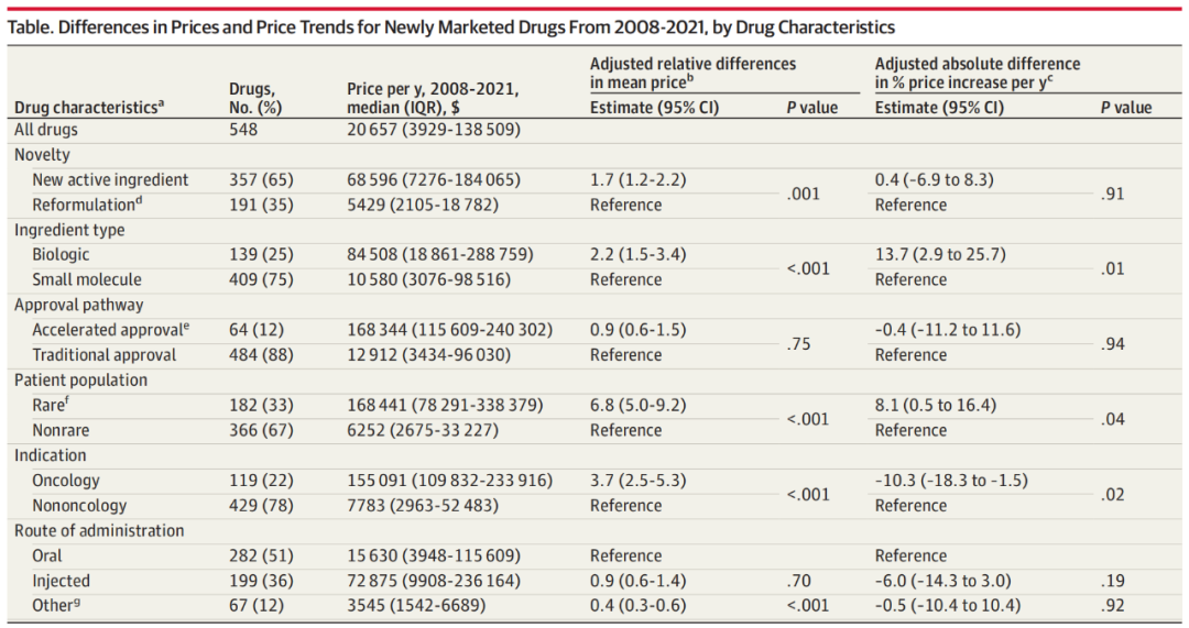 6月7日,哈佛大学医学院的两位教授以及他们的一位助理在《美国医学会杂志》上发表了一篇题为《2008-2021年处方药上市价格趋势》的文章,对2008至2021年里,美国新上市的576款药品中的548款进行了药价分析。