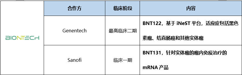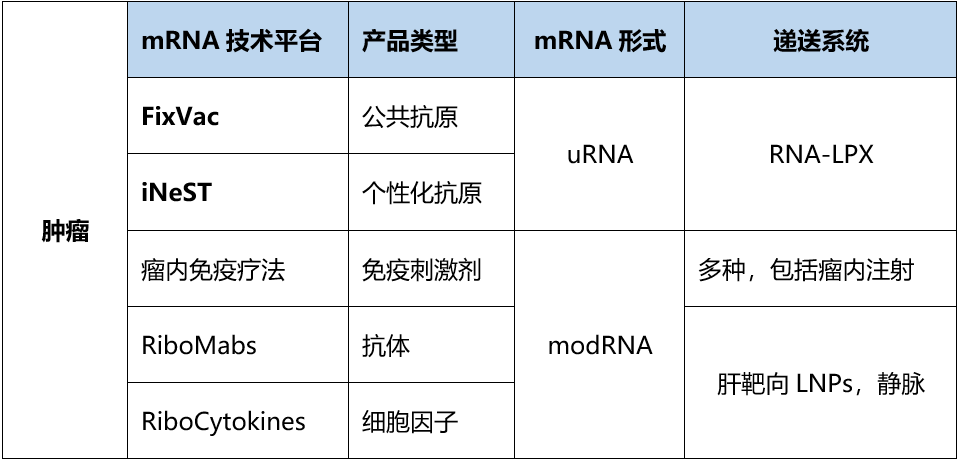 表2. BioNTech肿瘤领域mRNA平台