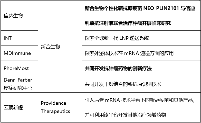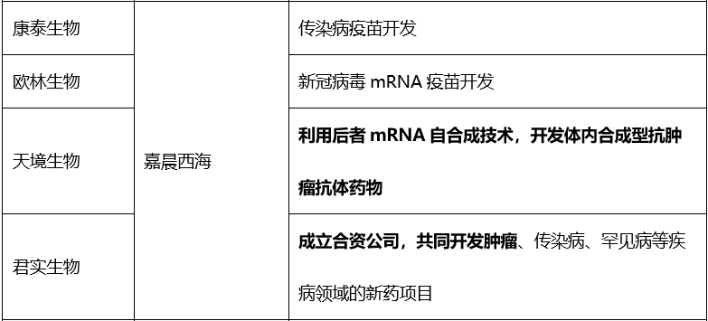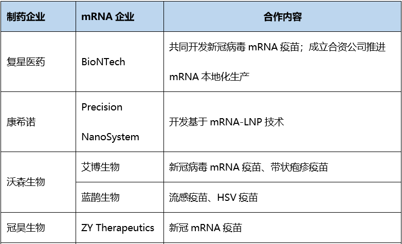 表5. 部分国内药企与mRNA技术企业合作情况