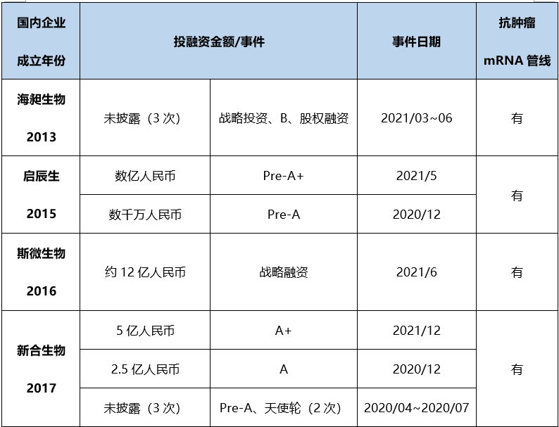 表6. 2020年至今国内部分mRNA技术企业投融资情况