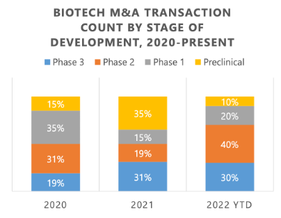 另一方面,大药企并购热情的回升对于大多数正在经历资本寒潮的Biotech公司来说并非都意味着机遇。当前,许多项目管线处在临床前或者Ⅰ期临床阶段的公司估值大幅下降,在获得资本方面遭遇巨大的挑战。