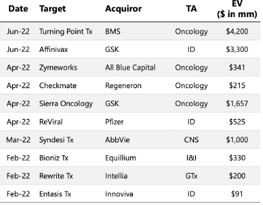 合作给了各方加深互相了解的机会,可能促成收购的发生。如辉瑞最初在2020年向Trillium投资了2500万美元,后在2021年辉瑞以22.6亿美元收购了该公司。
