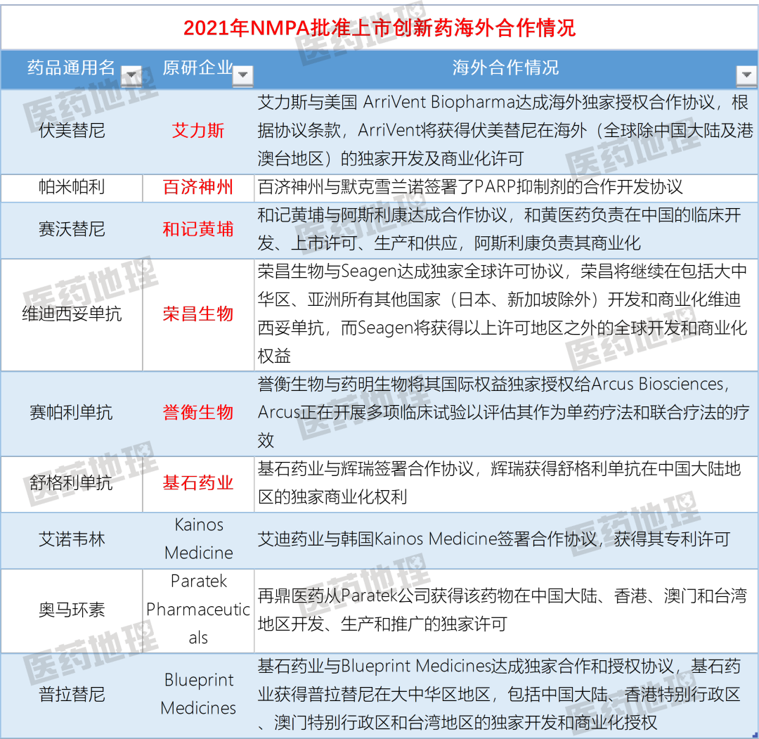 随着我国医药创新能力不断增强,创新成果还外溢到国外,伏美替尼、帕米帕利、赛沃替尼、维迪西妥单抗、赛帕利单抗和舒格利单抗6款产品实现“license-out”。