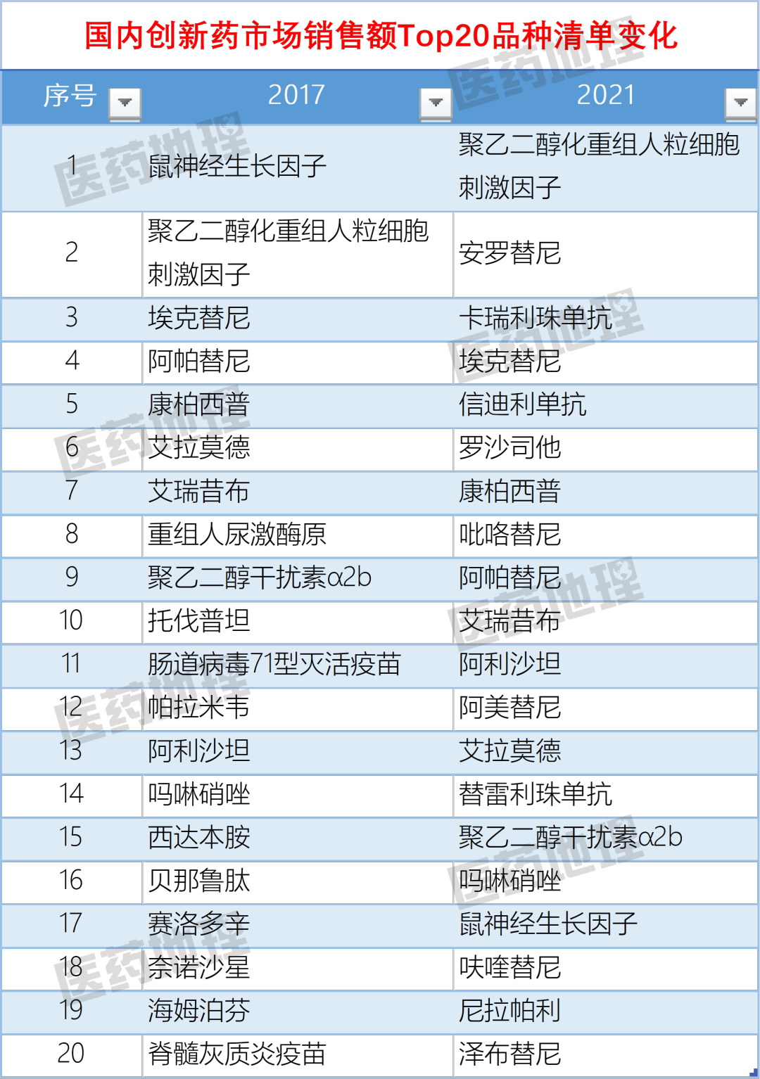 图2:国内创新药市场销售额Top20品种市场份额变化