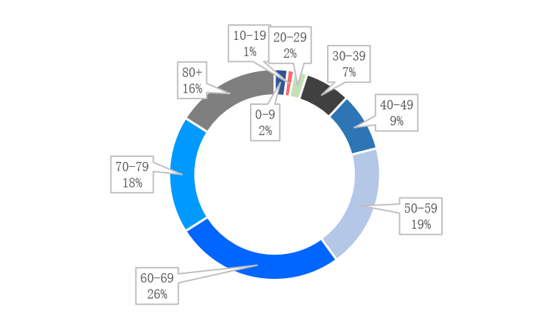 这一数据不难理解,老年人群的疾病发病率本就更高,另一个原因在于,老年人群投保惠民保的意愿更高。根据下图所示的惠⺠保用户数据来看,其产品年龄结构的老龄化程度目前明显高于常住人群年龄结构。
