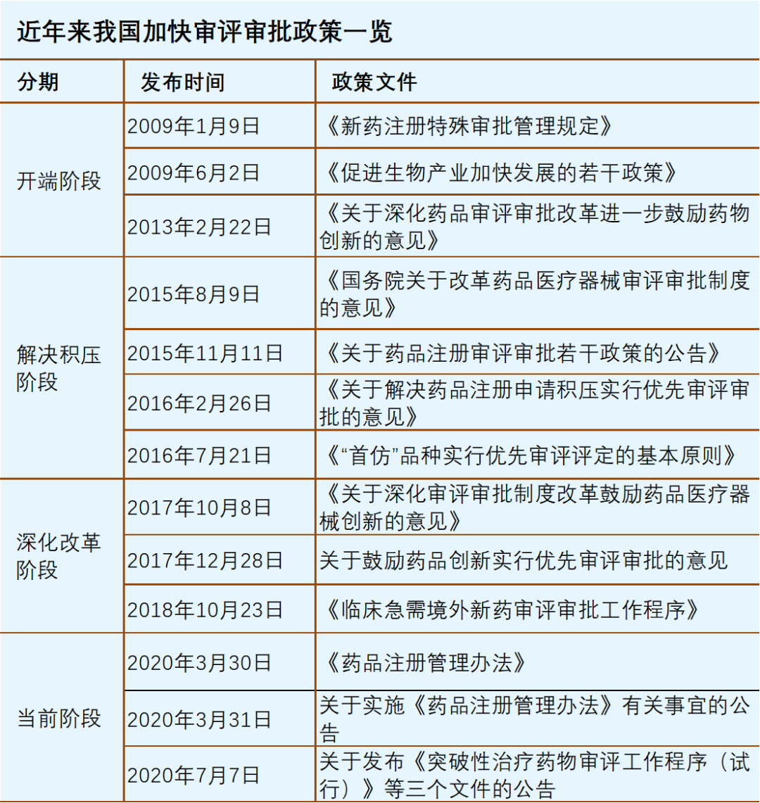 去年以来,加快建设以临床价值为导向的药品研发和审批审评制度,是配置审评审批优势资源向临床急需的创新药申请倾斜的必要措施,也关系到申请人的切身利益,其重要性不言而喻。加快审评审批,作为药审改革中比较有突出代表性的一环,同样经历了多轮调整和发展。