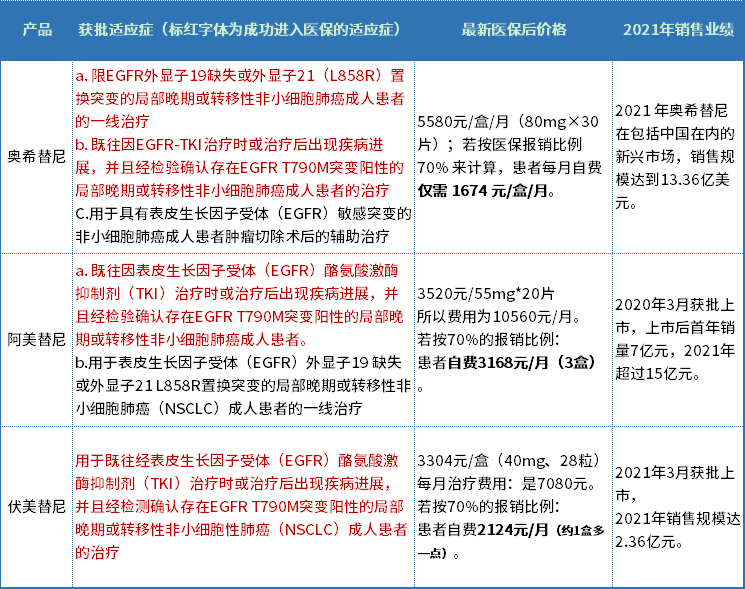 2021年底,奥希替尼新增适应症(上述c)未成功进入国家医保,价格维持不变。