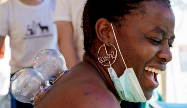 ▲ 2022年4月22日,纳米比亚首都温得和克,一名女子在“中文:共筑美好未来”主题活动上体验中医药穆萨·卡萨克摄/瞭望