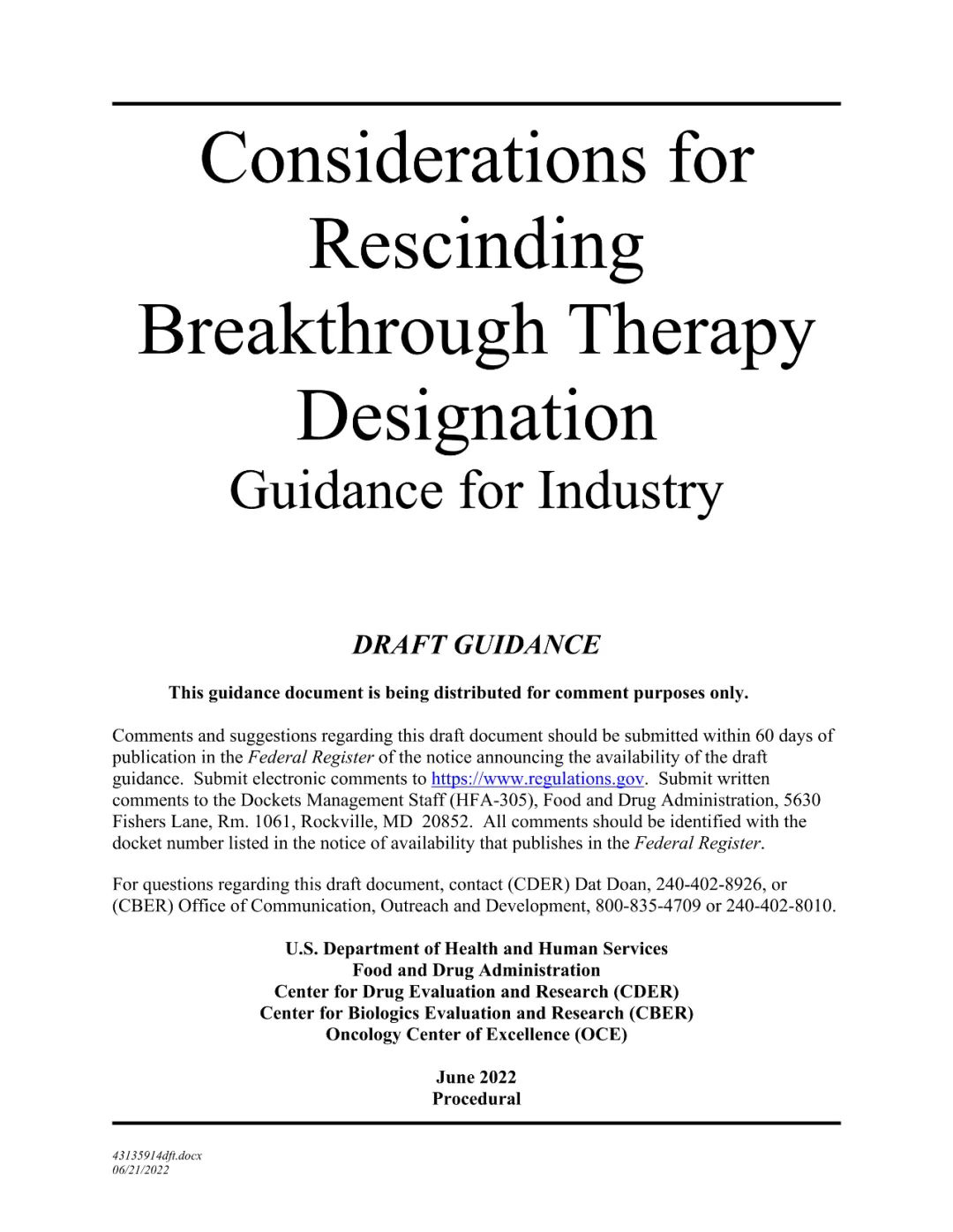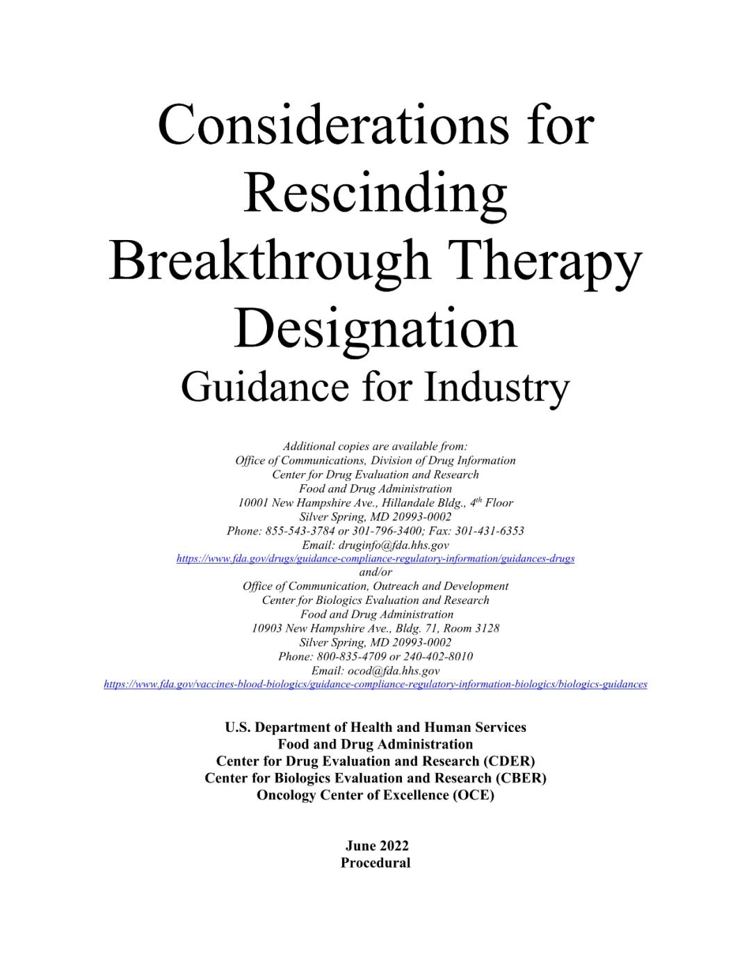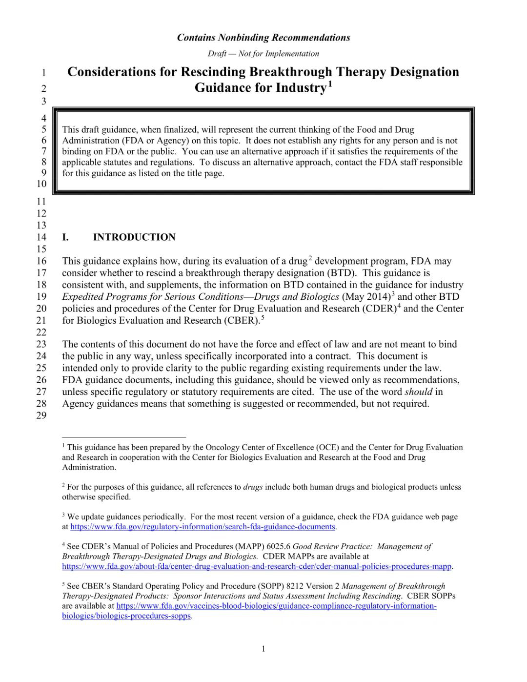 或许是“事故频发”,FDA在今年6月份也发布了一份关于突破性疗法的指导原则,让药企更深入的理解这项政策。