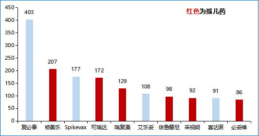 在2021年全球销售TOP10药品中,有6款药品曾获得过“孤儿药”资格认证,平均销量达到130亿美元。获得孤儿药资格的药品即为治疗罕见病的药品。
