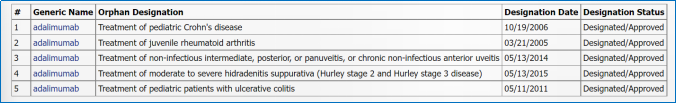 ▲图 6 修美乐获孤儿药身份认定的情况 资料来源:FDA