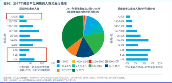 ▲图 7 美国罕见病患者人数和受治患者情况 资料来源:《美国孤儿药现状:独占期、定价与受治患者》,IQVIA,2019年