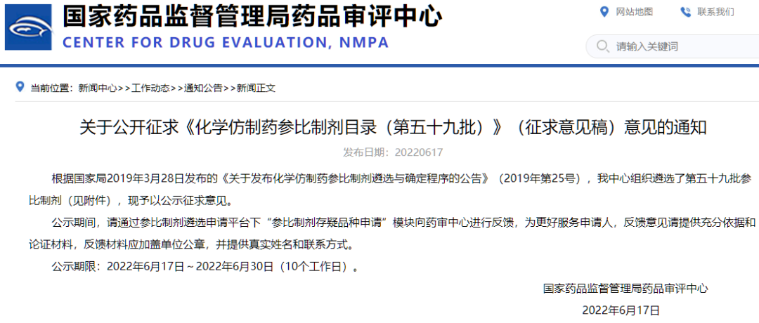 国家药品监督管理局药品审评中心(CDE)日前发布《关于公开征求<化学仿制药参比制剂目录(第五十九批)>(征求意见稿)意见的通知》,新参比制剂纳入尚未发布品种69个、增补品种32个、未通过品种27个、再议品种目录2个。