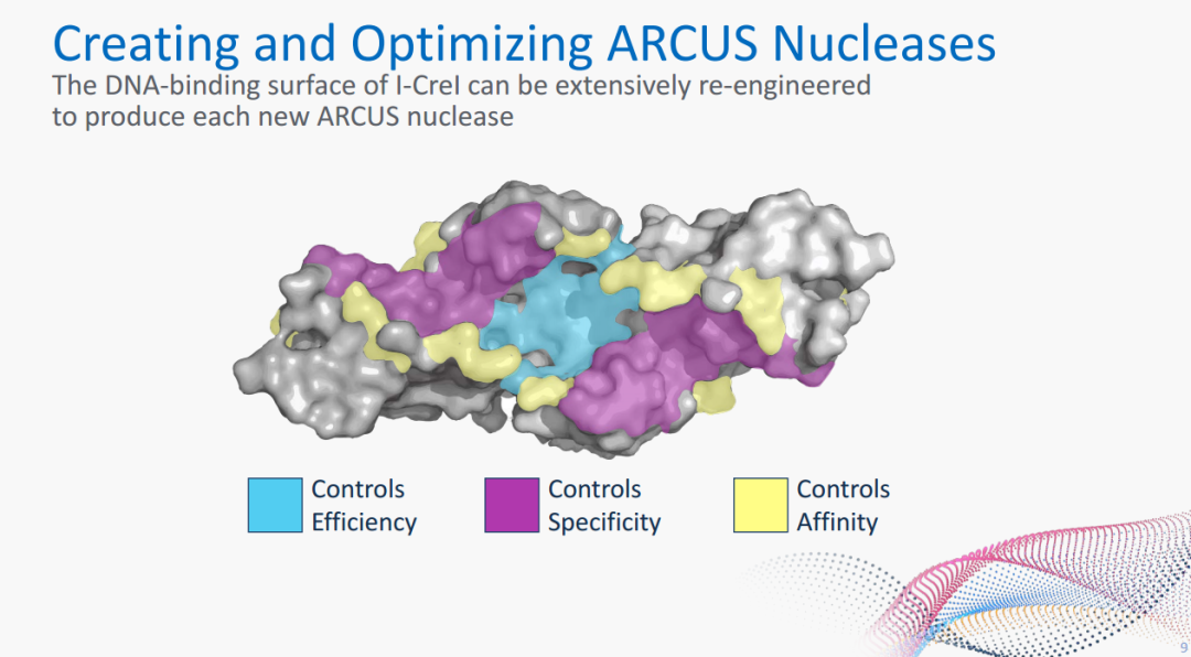 ARCUS是基于一种自然产生的基因组编辑酶I-CreI,它由莱茵衣藻中进化而来,可以在细胞DNA中进行高度特定的切割。Precision的科学家通过对I-CreI进行重新设计形成了ARCUS核酸酶,从而能够编辑新的DNA序列,用于插入(敲入)、移除(敲除)或修复活细胞和有机体的DNA。