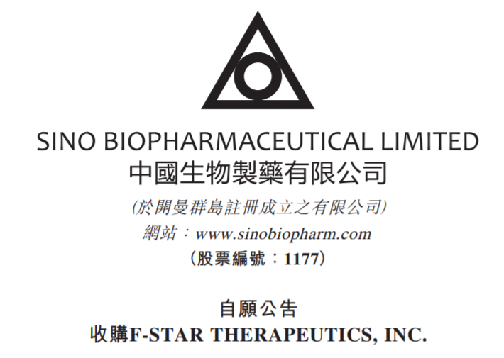 中国生物制药的全资子公司InvoX Pharma与F-star Therapeutics公司订立合并协议及计划,前者现金收购F-star公司所有流通中的普通股,每股7.12美元,总金额为约1.61亿美元。