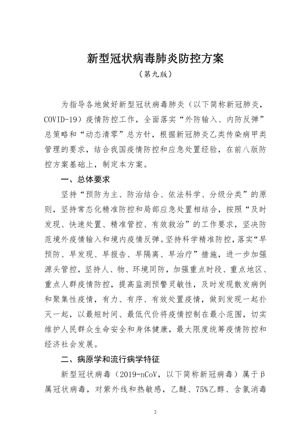 新冠肺炎防控方案(第九版)内容