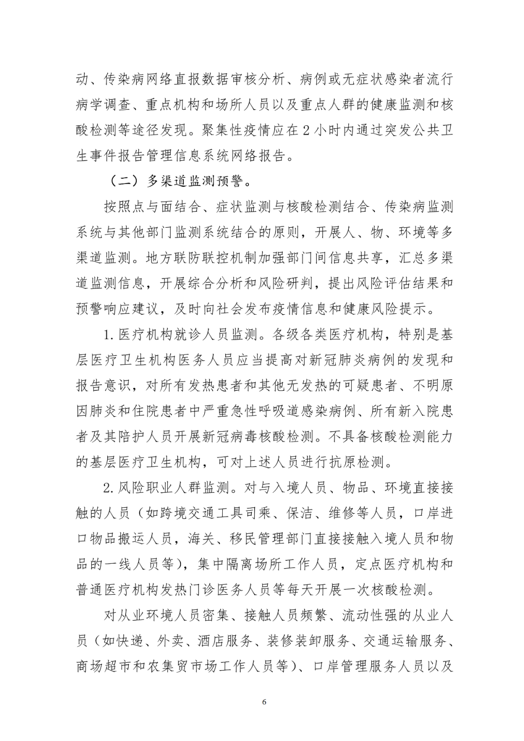 加密风险职业人群核酸检测频次,将与入境人员、物品、环境直接接触的人员核酸检测调整为每天1次,对人员密集、接触人员频繁、流动性强的从业人员核酸检测调整为每周2次。增加抗原检测作为疫情监测的补充手段,基层医疗卫生机构对可疑患者、疫情处置时对中高风险区人员等可增加抗原检测。