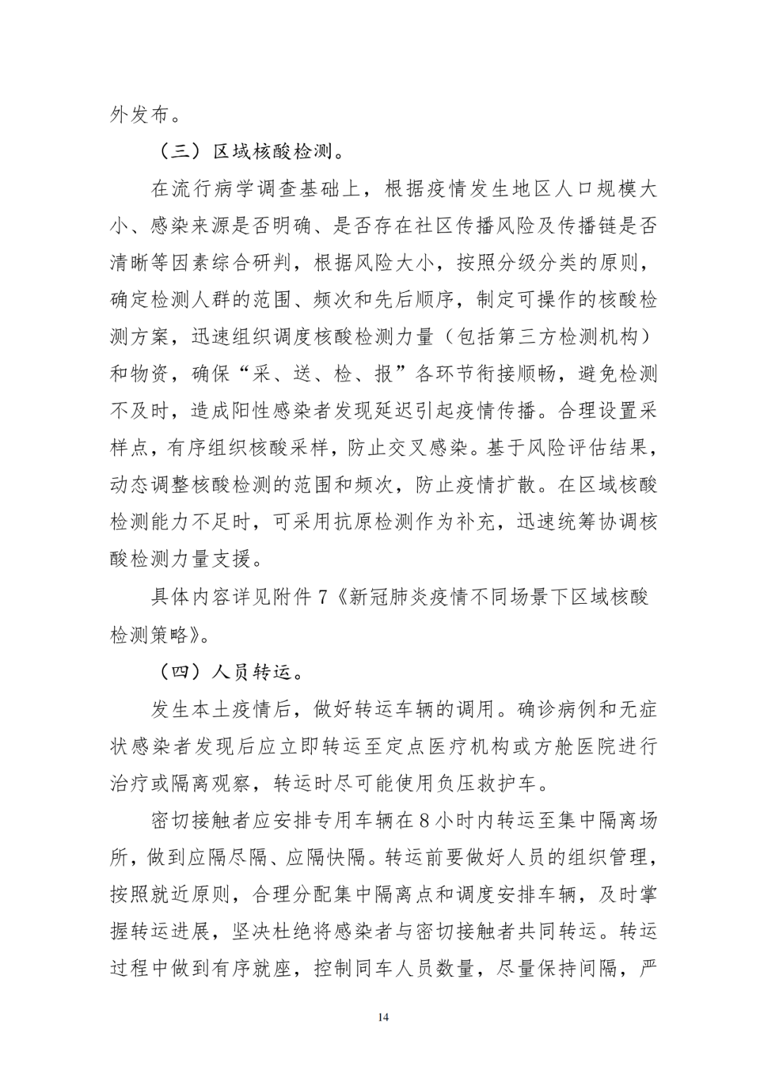 明确不同人口规模区域核酸检测方案,针对省会城市和千万级人口以上城市、一般城市、农村地区,综合疫情发生后感染来源是否明确、是否存在社区传播风险及传播链是否清晰等因素进行研判,根据风险大小,按照分级分类的原则,确定区域核酸检测的范围和频次。