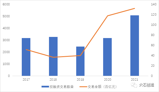 图1:2017-2021年全国生物医药领域投融资交易数量 来源:火石创造产业数据中心