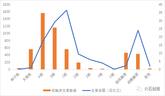 图2:2021年全国生物医药领域投融资轮次情况 来源:火石创造产业数据中心