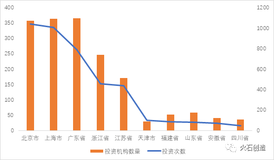 图3:2021年全国投资机构所在区域TOP10[1] 来源:火石创造产业数据中心