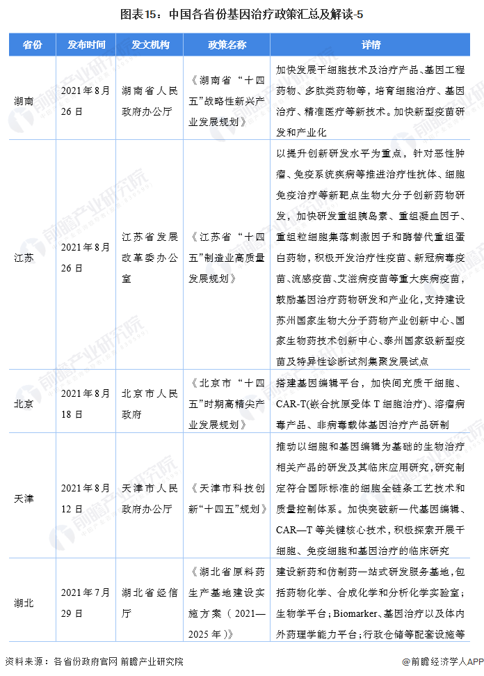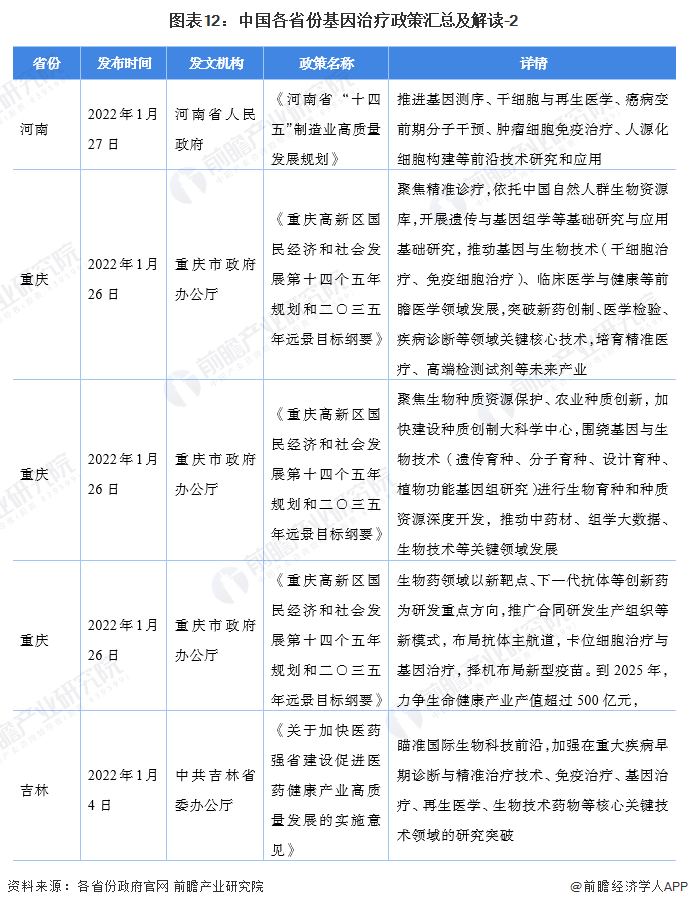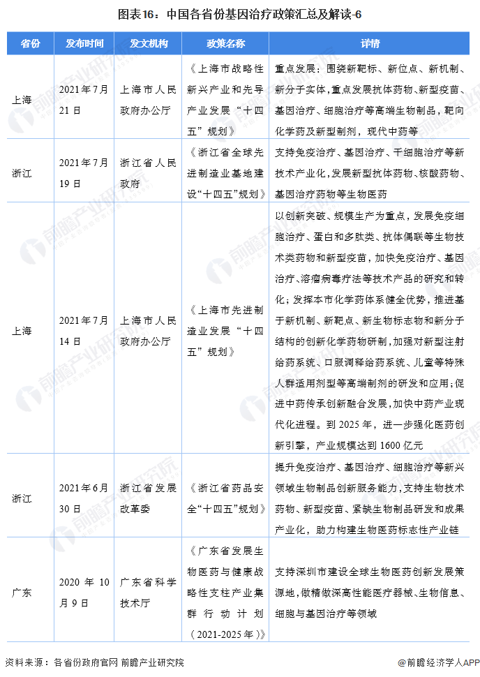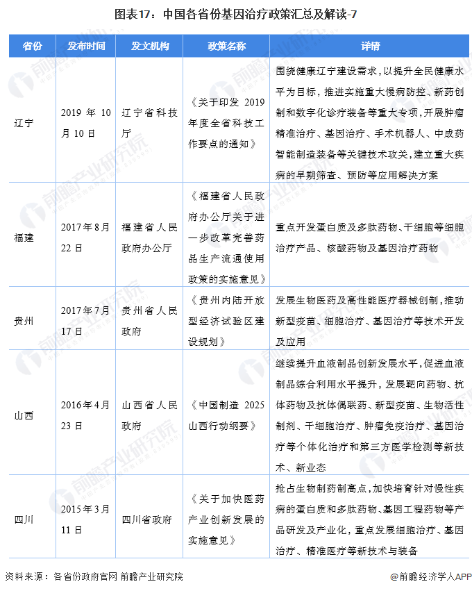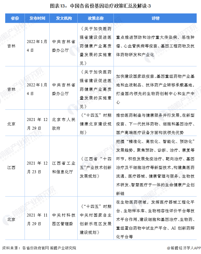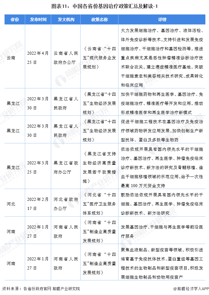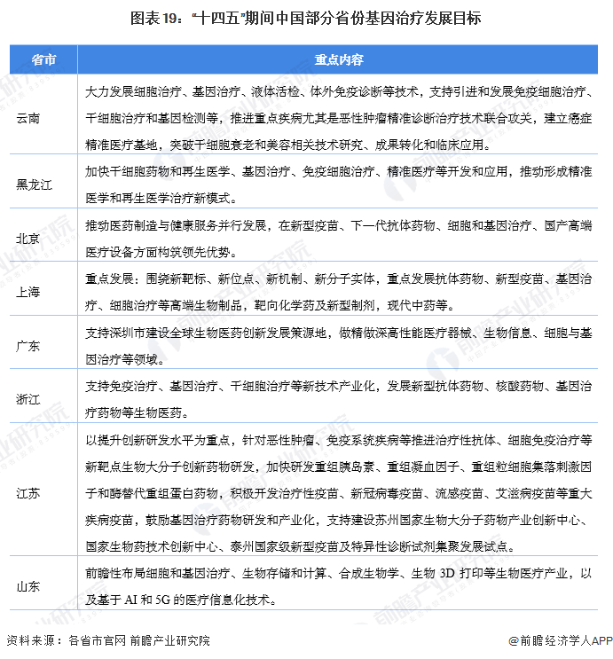 近年来,我国各省份积极出台各项政策,鼓励基因治疗行业发展。