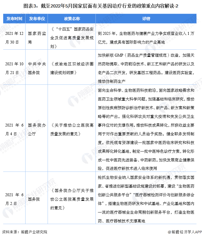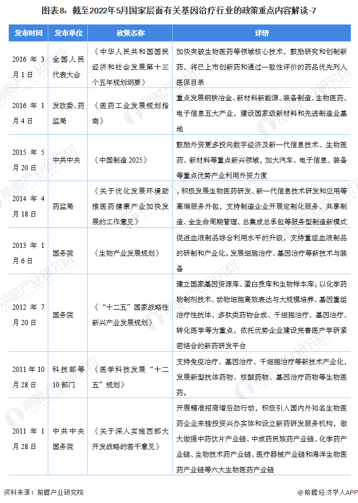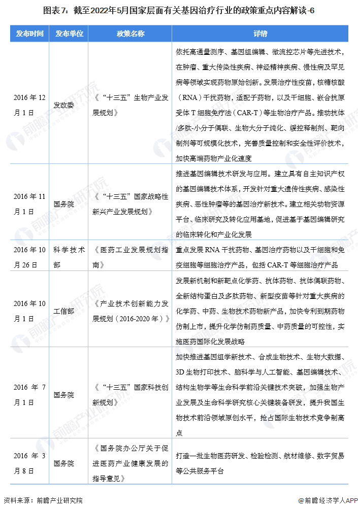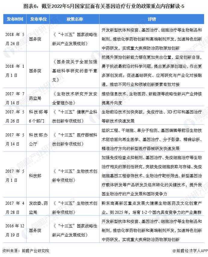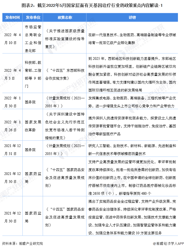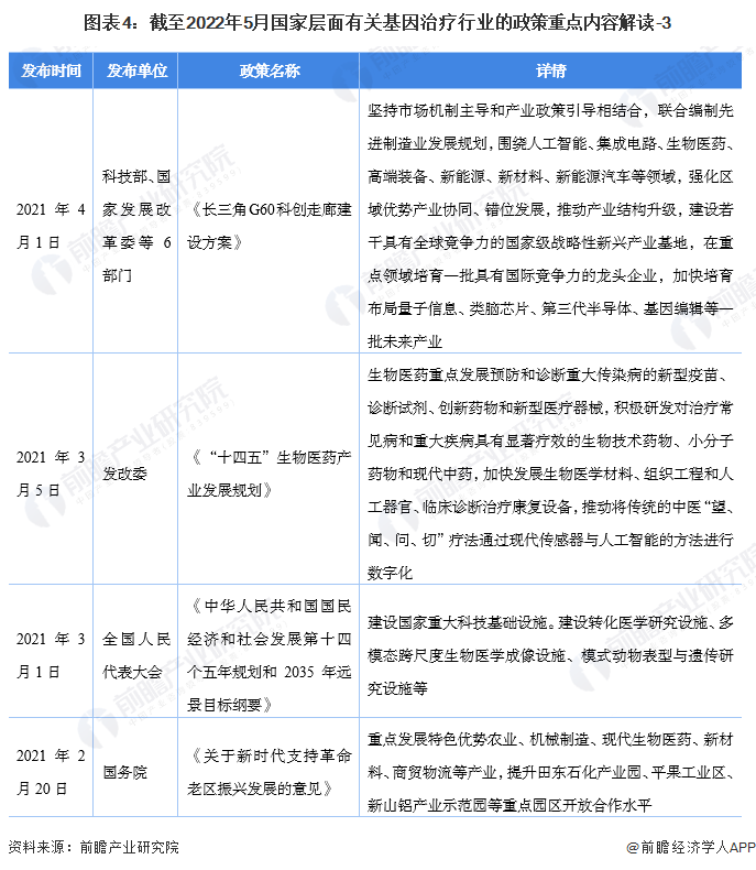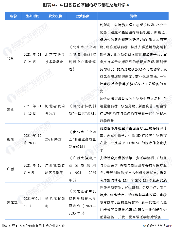 近年来,我国各省份积极出台各项政策,鼓励基因治疗行业发展。