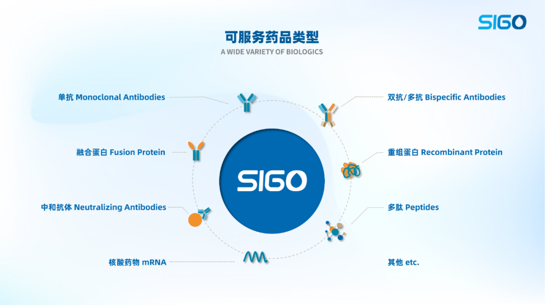 晟国医药拥有卓越的生物药研发和生产技术平台,具备超大规模原液、制剂开发生产经验,自主知识产权的培养基和填料,可服务产品包括单抗、双抗、多抗、融合蛋白、重组蛋白、中和抗体、多肽、核酸药物等,可为客户提供涵盖抗体工程、稳定细胞系建立、工艺开发、制剂配方开发、质量研究、中试生产和灌装、注册申报等,从DNA到IND再到NDA的全流程一站式服务。