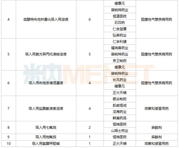 2021年中国公立医疗机构终端吸入剂产品TOP10