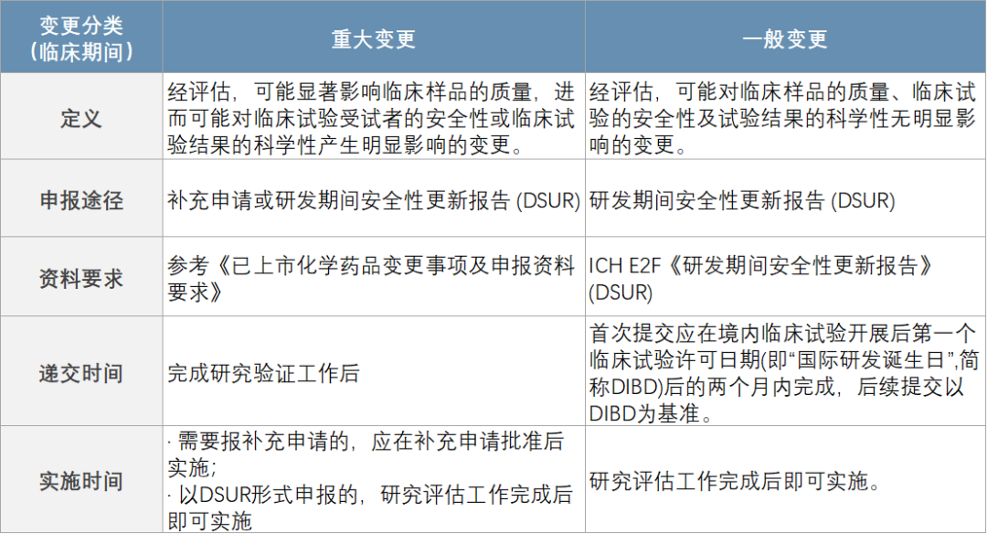 对于申请人来说,大多数变更发生在临床试验期间和上市后,故下文仅对临床试验期间和上市后变更进行简单梳理。