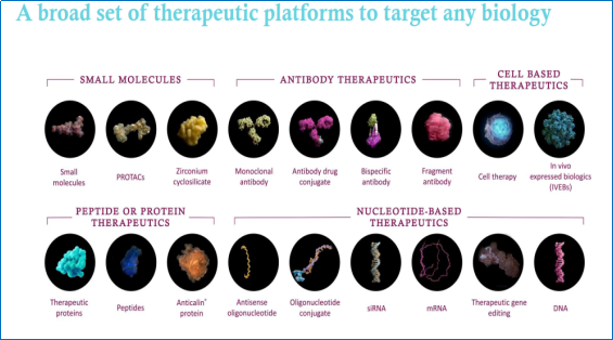 通过AI发现的全新靶点可能并不适合利用小分子或者抗体靶向,这时就需要多种治疗模式技术平台来靶向这些创新靶点,因此,阿斯利康建立了包括蛋白降解疗法、细胞疗法等多个治疗技术平台。