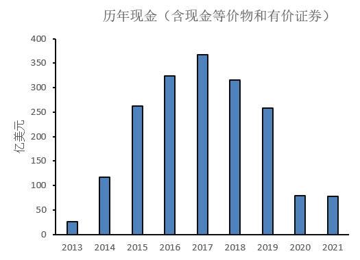 吉利德借款押注的这场豪赌也证明了自己的眼光。2013年底,索磷布韦(Sovaldi)上市,吉利德当年的总收入是112亿美元,年终现金、现金等价物和有价证券也只有25.7亿美元。2014年,索磷布韦的商业价值开始彰显,销售收入达到近103亿美元,几乎相当于2013年吉利德的全年收入。此后,随着Harvoni(索磷布韦复方制剂)、Biktarvy等HCV/HIV领域的药物上市,吉利德现金流(含现金等价物和有价证券)也急速扩充,从2013年的25.7亿发展到巅峰时期的367亿美元。