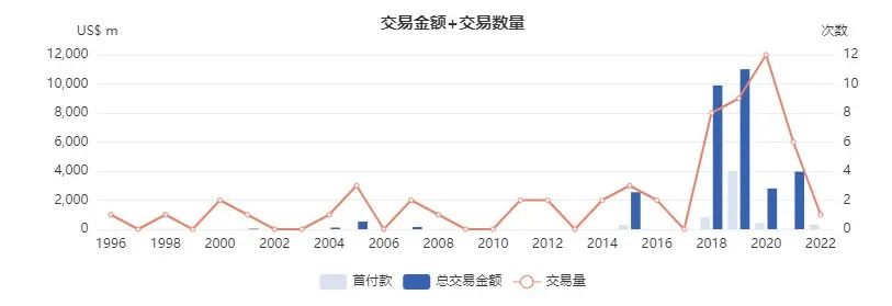 伴随着Comirnaty带来的庞大现金流,2020年开始辉瑞的交易合作也越加频繁。2021年,交易合作数量达到新高。但是,交易合作的总金额并未创造新高,似乎体现了辉瑞在合作并购上的态度。