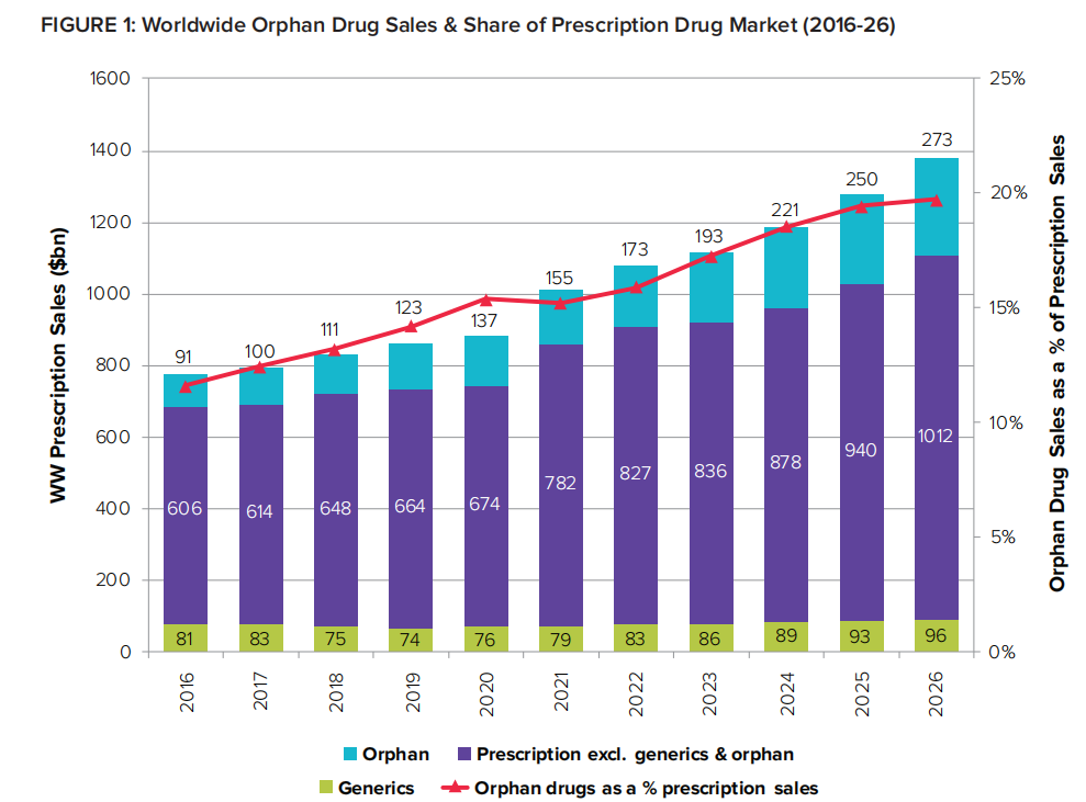 此前,Evaluate发布《2022 年孤儿药报告》报告显示,孤儿药市场2021-2026 年的复合年增长率为 12%增长速度为非孤儿药市场2倍。到 2026 年,孤儿药将占所有处方药销售额的 20%,占全球药物管线价值的 1/3 左右。