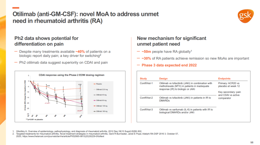 ▲Otilimab是一款具有独特作用机制的类风湿性关节炎疗法(图片来源:GSK官网)